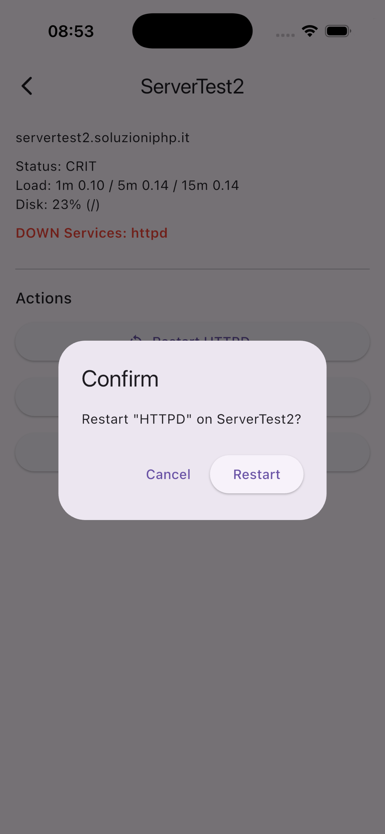 Ricevi la notifica Push → apri l’app → premi “Restart”. Il servizio riparte.