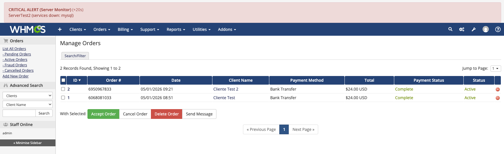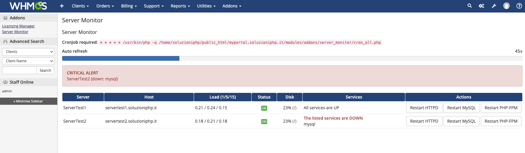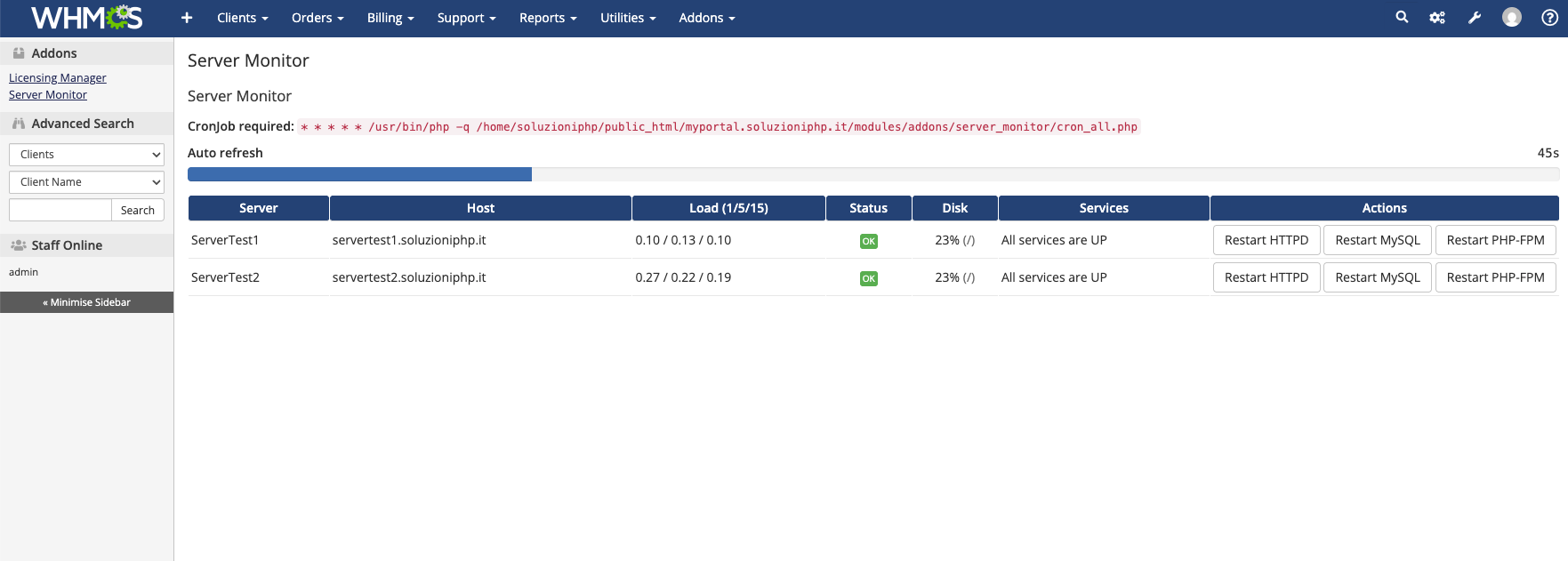Il modulo Server Monitor si integra direttamente in WHMCS e consente di: